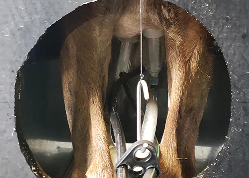 The milking shed is designed so it can milk 40-50 hinds per hour. Each hind will produce approximately one litre of milk per day. Only a handful of deer milkers have been trained to undertake this specialist task.